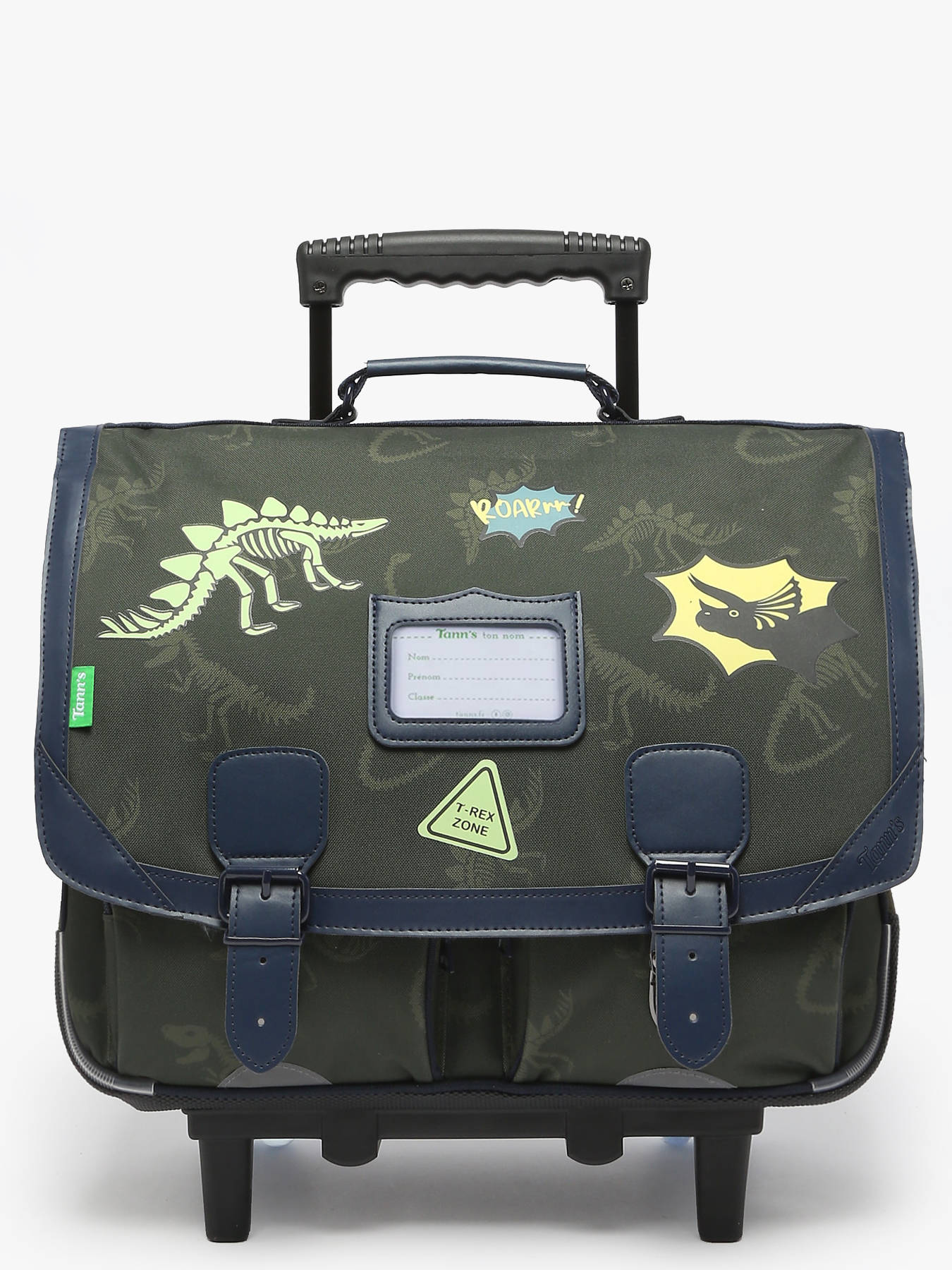 41 cm - 23 liters - 2.5 kg ~ The TANN'S rolling schoolbag, crafted from recycled polyester, is perfectly suited for boys aged 7-8 years and 9-10 years. On the outside, it features two front pockets with a flap secured by a clasp, providing easy and secure access to essential school supplies. Adjustable straps ensure comfortable carrying on the back, while the integrated handle facilitates hand carrying. Inside, this schoolbag has two main compartments and two zip pockets, ideal for organizing an A4 folder, a notebook up to 24x32 cm, and even an A4 binder. Made from recycled polyester, this schoolbag combines durability and environmental responsibility, offering young students a reliable and eco-friendly companion for their studies.