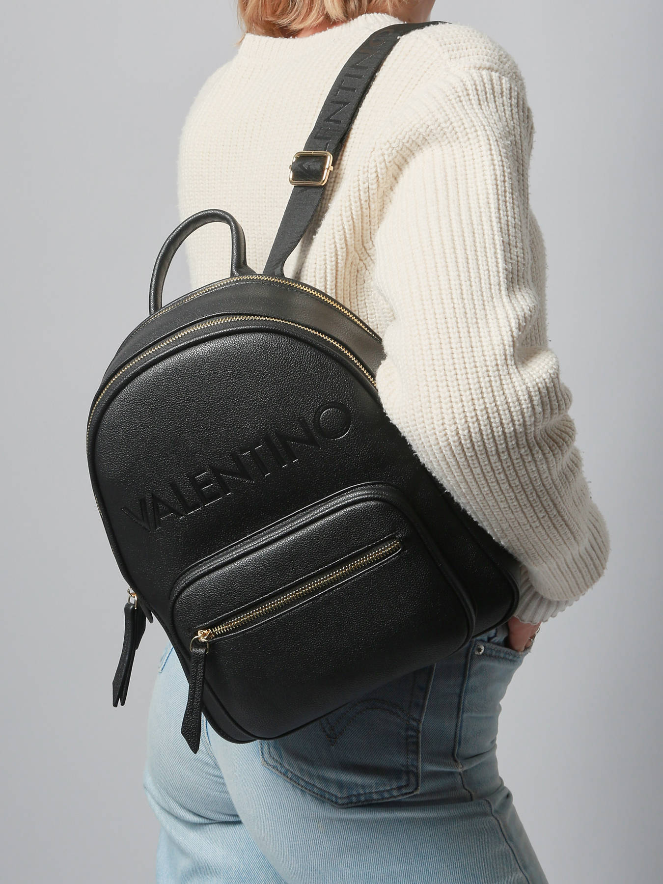 The VALENTINO backpack combines style and functionality for everyday use. Made from coated canvas, it is both durable and easy to maintain, while offering a modern and practical look. The zip closure keeps your belongings secure, while the front pocket provides quick access to your essentials. Adjustable shoulder straps ensure optimal comfort when worn on the back, making it suitable for all your daily activities. Inside, the backpack features two compartments, a simple pocket, and a zipped pocket, allowing you to keep your belongings well organized and easily accessible. Practical, durable, and stylish, this backpack is the perfect accessory for city life, outings, or daily commutes.