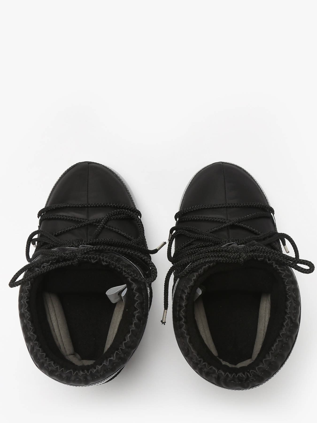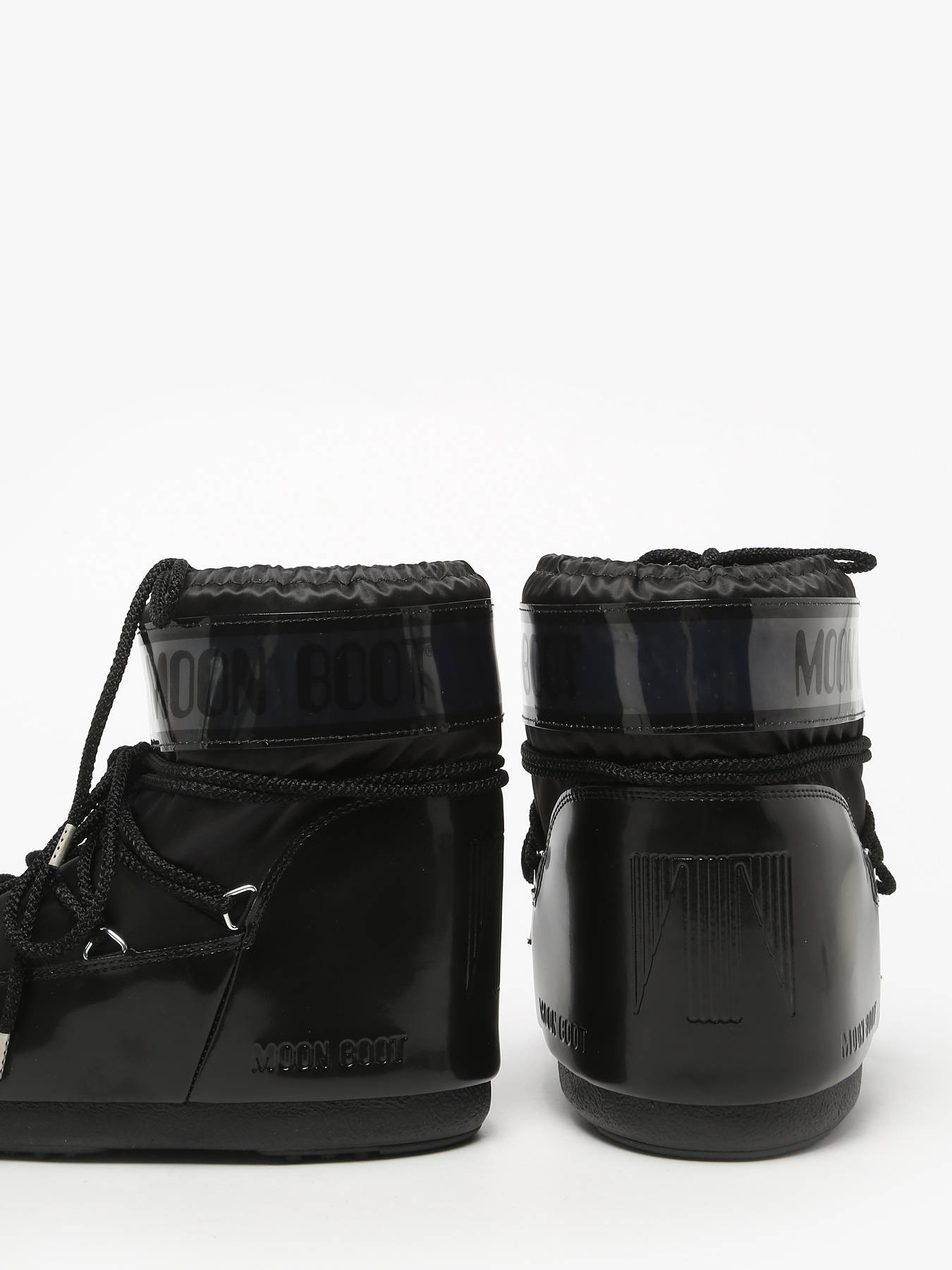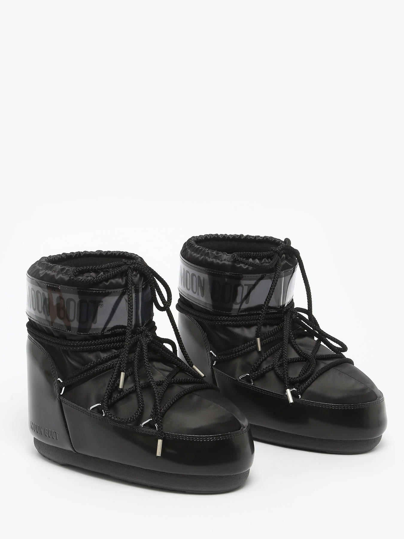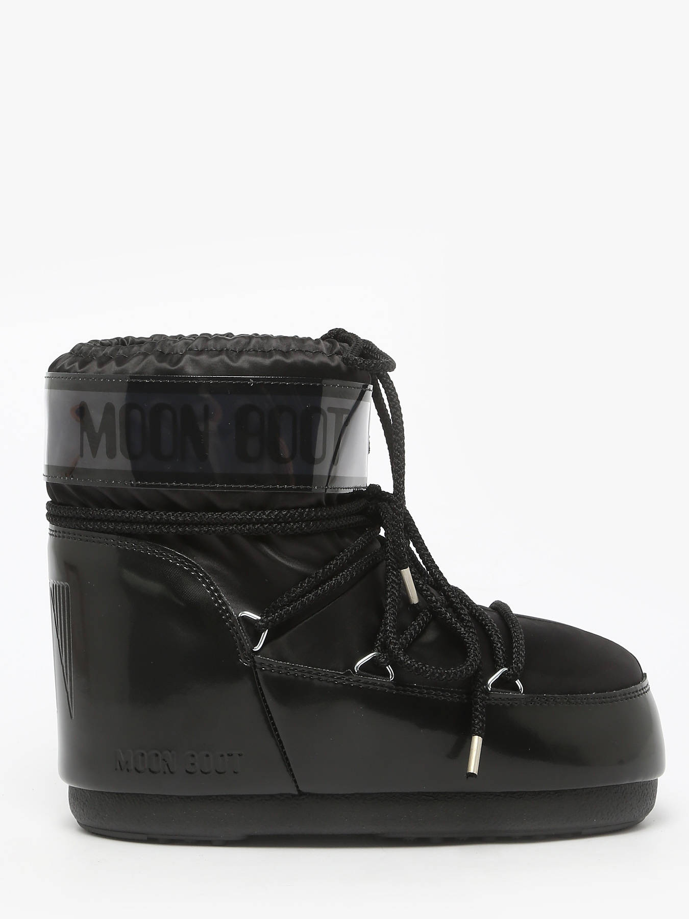 Discover the MOON BOOT Icon Low Glance Black satin boots, a bold model inspired by the 1969 moon landing and high-tech astronaut suit design. These ambidextrous boots can be worn on either foot thanks to a multi-size foam lining that slightly relaxes after a few hours, perfectly adapting to the shape of any foot for a secure and comfortable fit across a wide range of sizes. They provide optimal insulation with a lightweight midsole and maximum grip thanks to suction cups on the rubber outsole. Featuring a printed logo panel, PVC heel counter and trim, silver metal eyelets, tubular crisscross laces, and a top drawstring, they are easy to slip on, and we recommend sizing up for this model.