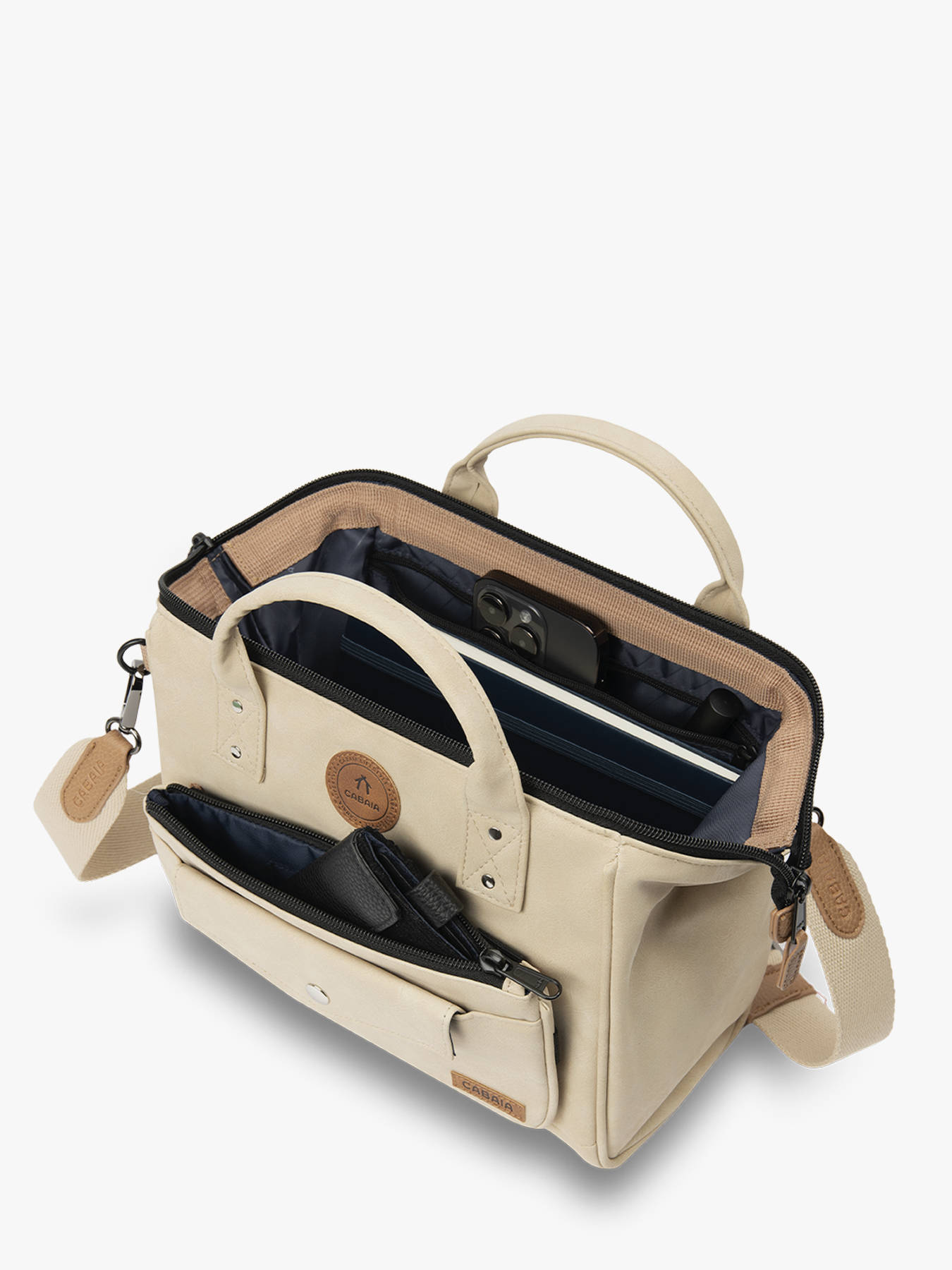 The CABAIA crossbody bag, made from recycled polyester, is both eco-friendly and practical. On the outside, it features a front pocket and a back pocket for quick access to your small essentials. Its zip closure ensures the security of your belongings. The adjustable and removable shoulder strap allows you to wear it crossbody or by hand, depending on your preference. Inside, two simple pockets, one zippered pocket, and a main compartment provide optimal organization for your personal items. This bag combines functionality and environmental responsibility, making it perfect for everyday use.