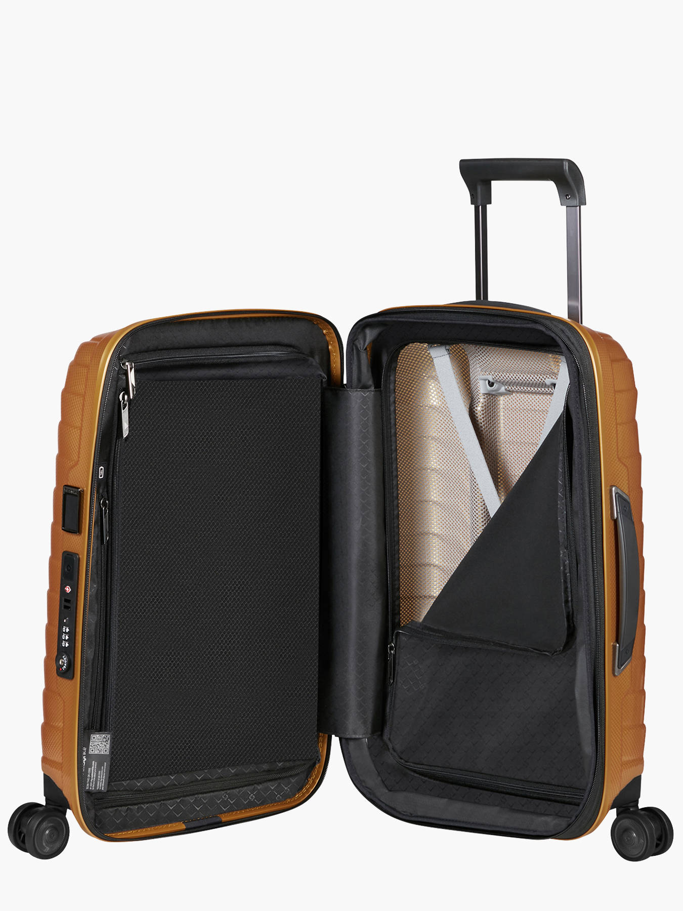 Travel smarter with the Samsonite Proxis Slim Cabin Case, designed for style, durability, and convenience. Made in Europe from innovative Roxkin™ polypropylene, this resilient material easily bounces back into shape and offers exceptional impact resistance. Weighing just 2.2 kg with a 38/44 L expandable capacity, it meets most airline cabin size requirements. The exterior features a TSA-approved lock, double-tube telescopic handle, retractable ID tag, four smooth-rolling silent wheels, and high and side carry handles for effortless handling. Inside, two spacious compartments include cross straps, zippered dividers with pockets, and a dedicated Power Bank compartment (battery not included). The integrated USB port lets you charge devices on the go, while the expandable design provides extra packing space when needed. Combining premium craftsmanship, innovative materials, and practical features, the Samsonite Proxis Slim Cabin Case is the perfect travel partner for frequent flyers seeking lightness, durability, and first-class performance.