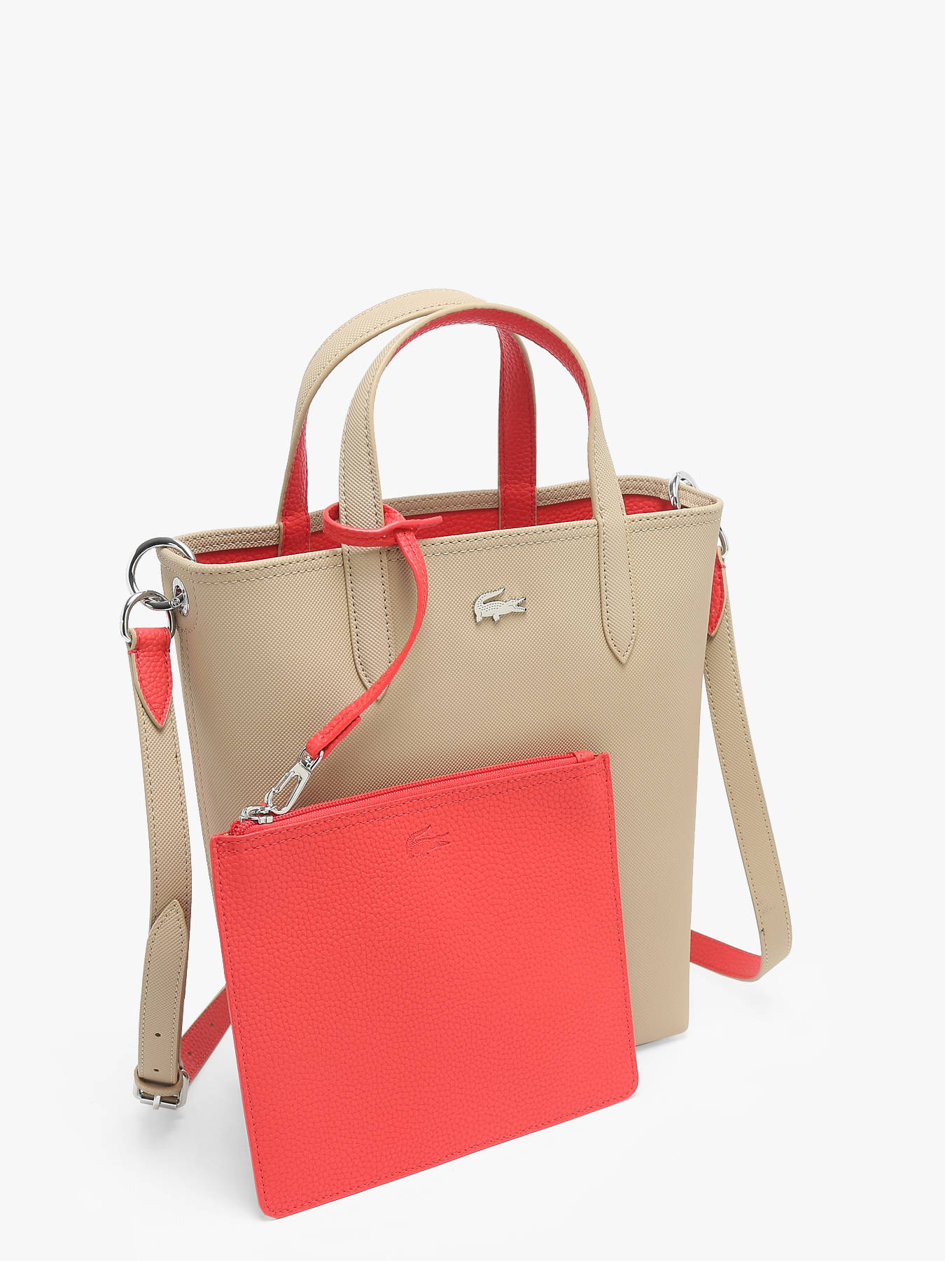 Voici un sac original proposé par la marque Lacoste, un modèle tout en longueur issu de la collection Anna. Ce sac à main, ou peut-on dire sac cabas de par son compartiment spacieux, a une caractéristique particulière : il est réversible. Un côté noir et un côté beige, il s’adapte à toutes les saisons, à tous les looks et pour toutes les occasions. Il est confectionné dans une superbe toile enduite et dispose en plus d’une bandoulière réglable et amovible pour vous débarrasser les mains lorsque vous êtes en balade. A l’intérieur, vous trouverez en complément une pochette indépendante de couleur sable que vous pourrez détacher ou laisser à l’intérieur pour un rangement supplémentaire. Un combo parfait !