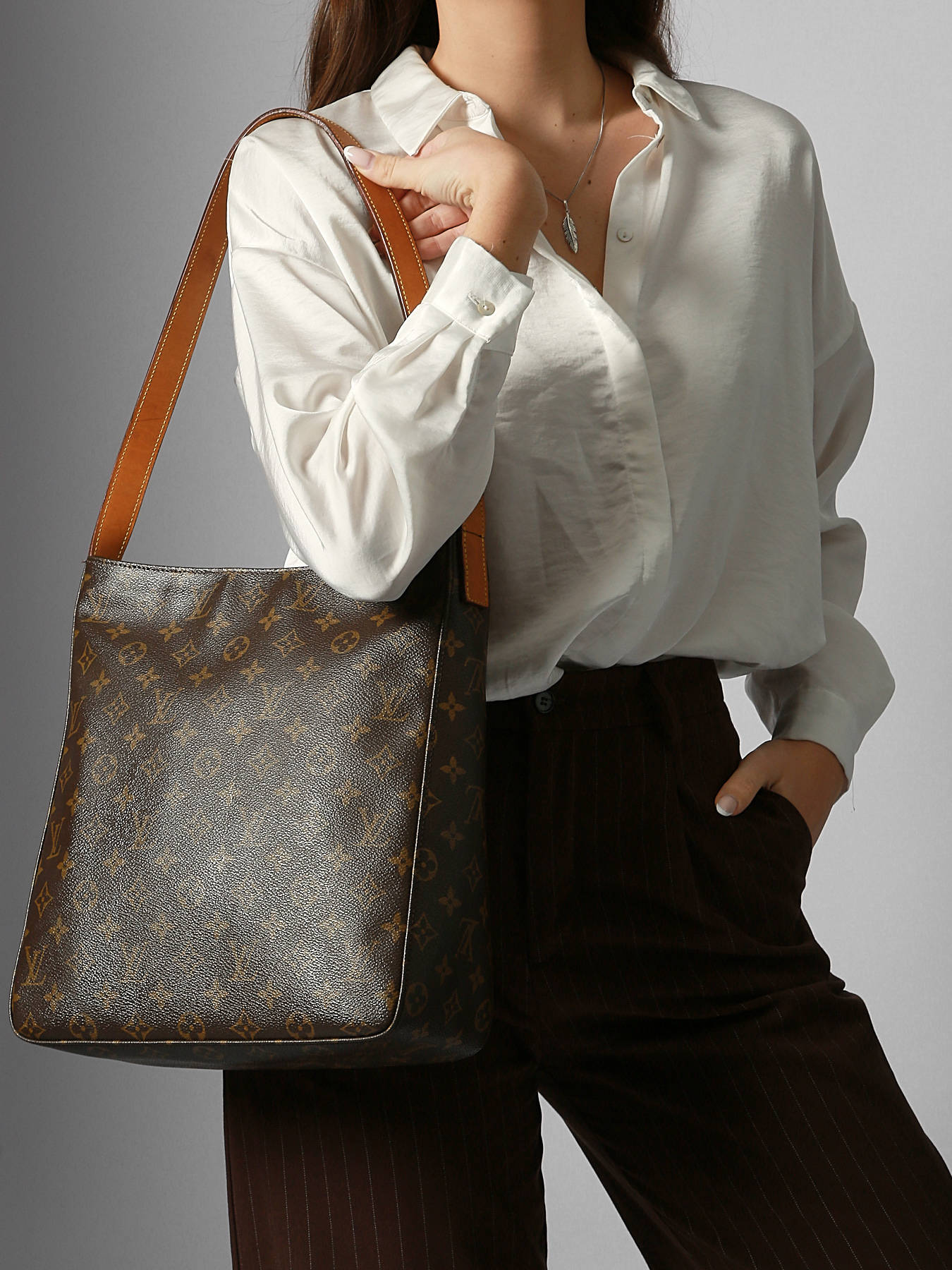 Le sac porté épaule ligne Looping GM LOUIS VUITTON SECOND LIFE est conçu en toile enduite résistante avec des garnitures en cuir, alliant élégance et robustesse. Il se ferme par une fermeture zippée sécurisant vos effets personnels. Doté d’une anse de 30 cm, il se porte aisément à l’épaule pour un confort optimal. L’intérieur se compose d’un compartiment principal, d’une poche simple et d’une poche zippée, offrant une organisation pratique pour vos essentiels. Classé en grade A/B, ce sac porte les signes d’une utilisation fréquente avec des marques, traces ou usures qui lui confèrent une belle patine, symbole d’une histoire vécue. Ce modèle emblématique reflète le savoir-faire artisanal et le style intemporel de LOUIS VUITTON, idéal pour un usage quotidien alliant chic et fonctionnalité.