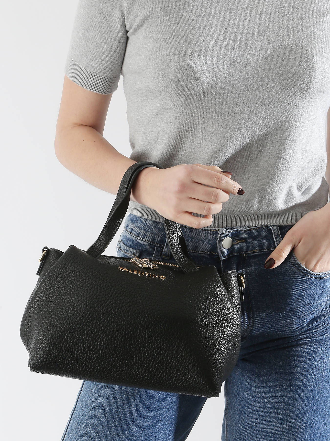 The VALENTINO handbag, made of coated canvas, is the perfect accessory to combine elegance and practicality. Its zip closure ensures the safety of your personal items, while the interior pockets, including a zippered pocket and a simple one, allow for optimal organization. The 15 cm handle height is perfect for a comfortable hand carry, but you can also opt for the shoulder carry with the adjustable and removable strap. This bag is an ideal choice for those looking for a versatile and chic accessory. Its modern and timeless design makes it a perfect companion for any occasion, from daily use to more formal events. With an additional interior pocket for better organization, this VALENTINO bag combines functionality and sophistication for a consistently impeccable style.