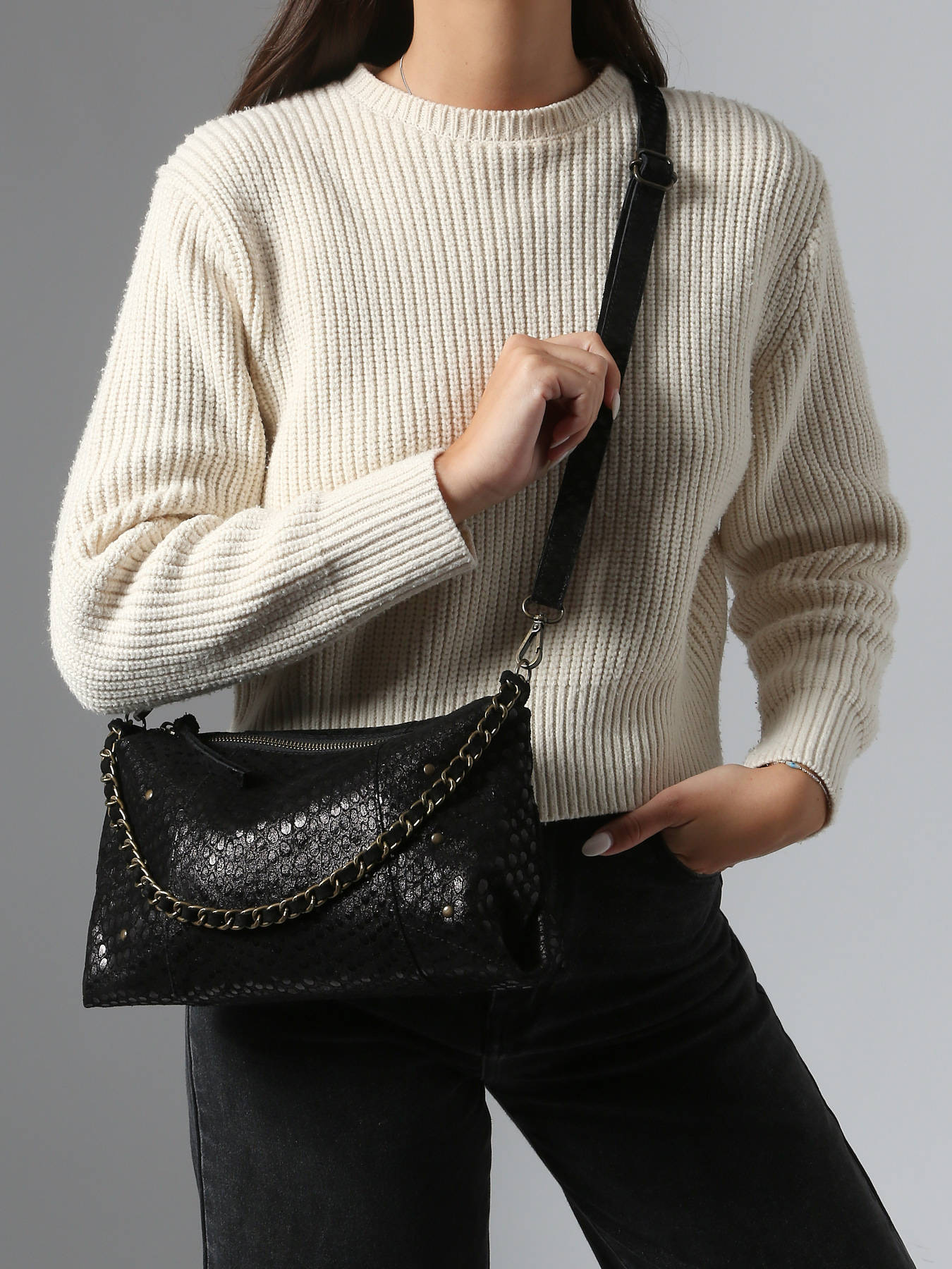 Shoulder bag velvet caviar leather