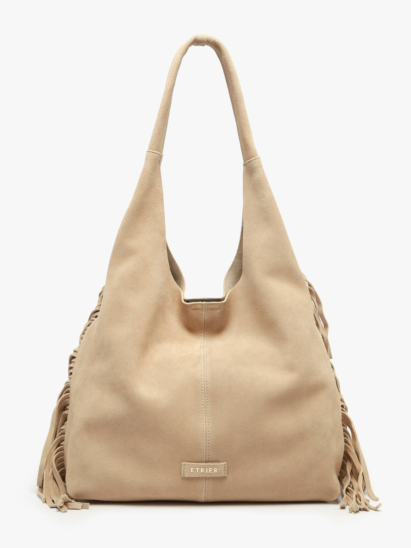 The ETRIER shoulder bag from the COUNTRY line is made of velvety leather. This small M-sized hobo silhouette stands out with its side fringes and bold bohemian style. It features a smooth leather slip pocket on the back. The bag closes with a magnetic snap. Inside, a removable pouch helps organize your essentials. This compact model embodies a free and elegant spirit — perfect for adding warmth, character, and authenticity to your winter outfits.
