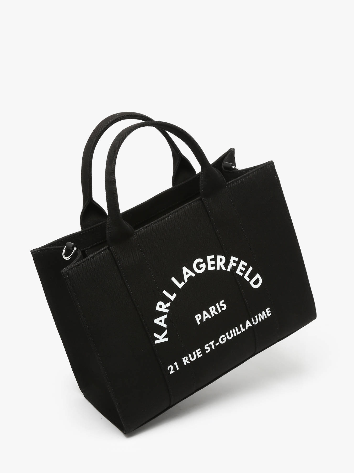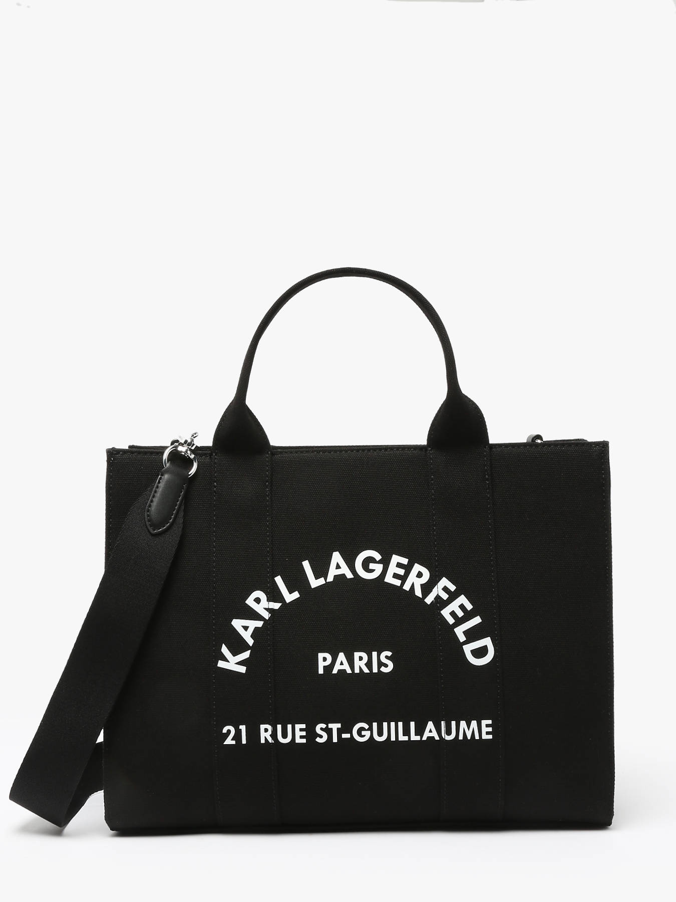 The KARL LAGERFELD cotton handbag is an elegant and versatile model. It features a modern design with a zip closure for added security. Its adjustable and removable strap allows for both handheld and crossbody wear, adapting to your needs and style. Inside, it has two simple pockets and one spacious main compartment to organize your essentials. This bag is the perfect accessory for daily use, combining practicality and sophistication while showcasing the distinct style of the KARL LAGERFELD brand.