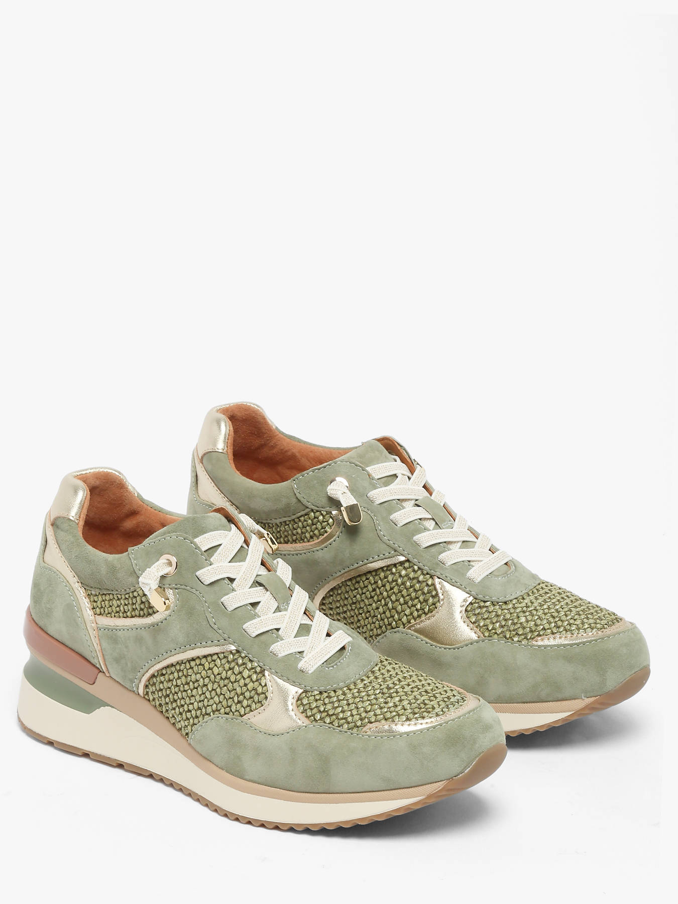 Les baskets Visio de Mam’zelle allient élégance, confort et légèreté pour un style estival parfait. Avec un dessus en cuir et synthétique et une doublure en cuir, elles offrent un maintien agréable et une sensation de douceur. La semelle intérieure en cuir, amovible pour plus de praticité, et la semelle extérieure compensée de 4 cm assurent confort et silhouette sublimée. Parfaites pour une transition en douceur vers l’été, elles séduisent par leur mesh raphia léger et leurs finitions dorées raffinées. Disponibles en sauge avec détails or, Visio apporte une touche chic et féminine à toutes vos tenues. Polyvalentes et modernes, elles s’adaptent à chaque occasion où style et confort se rencontrent.