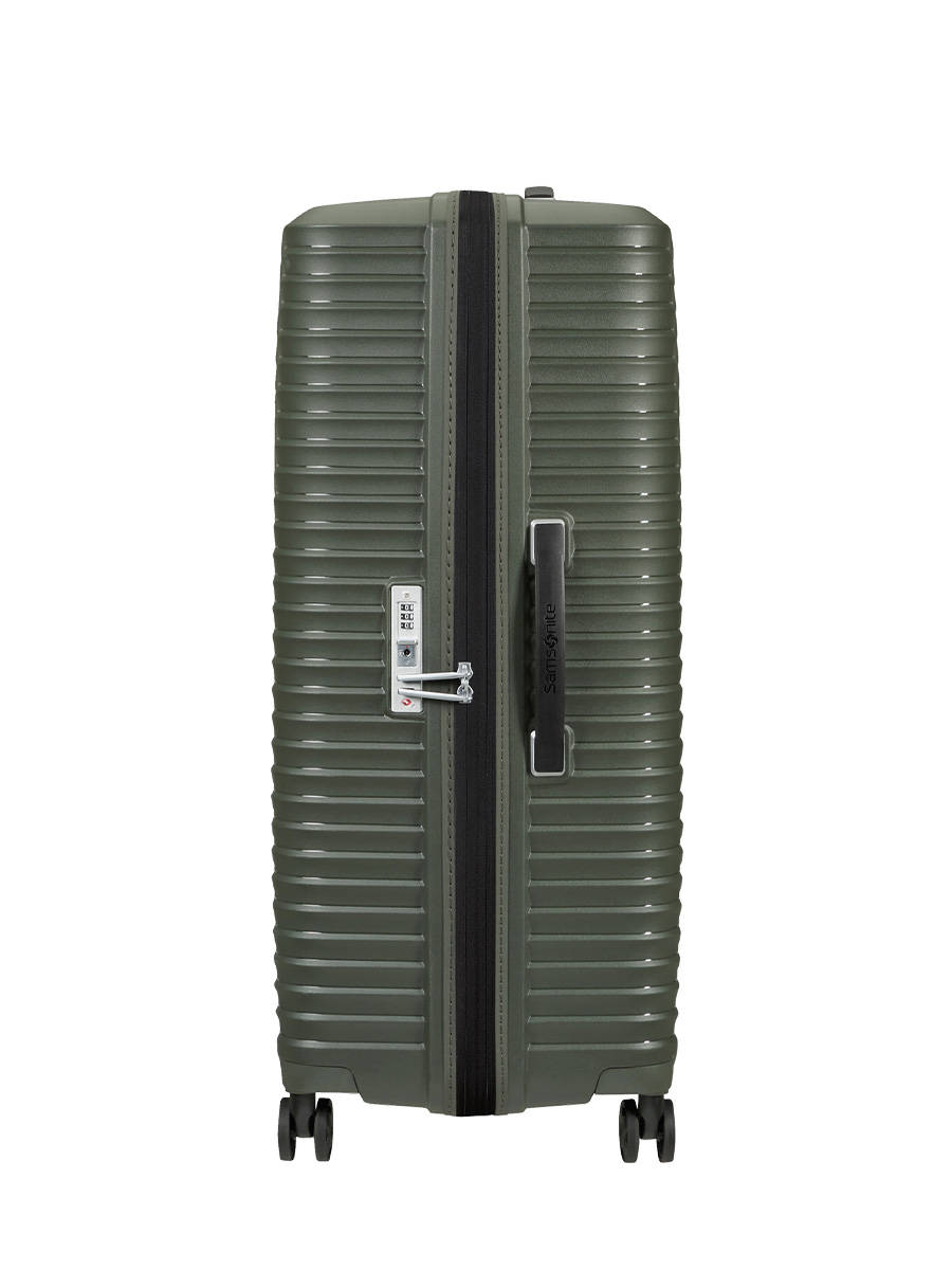 Travel worry-free with the Upsacpe suitcase from Samsonite. Its many advantages such as its shock absorbing suspension wheels, its removable and washable inner lining made of recycled polyester, its TSA code lock and its double tube telescopic handle will make your trip easier. This suitcase has two large compartments closed by strap or zip to allow you to take more than 2 weeks of luggage with you. This XL size suitcase will accompany you during your most beautiful trips.